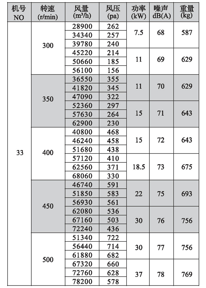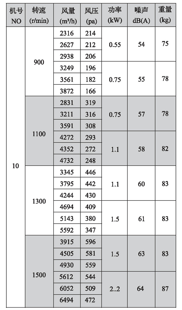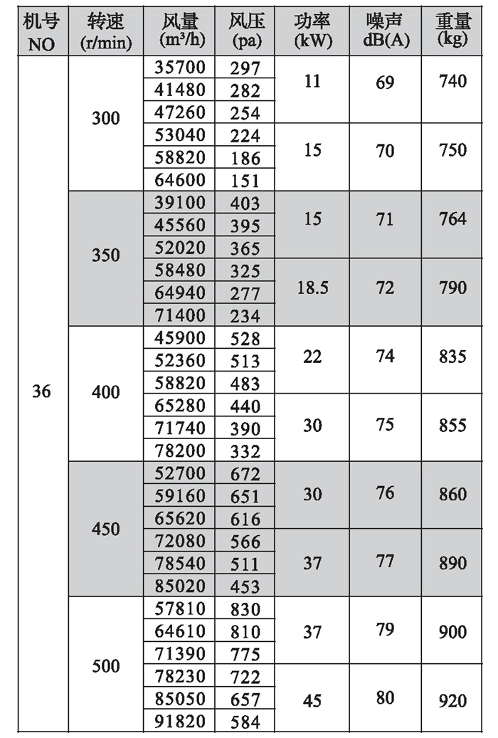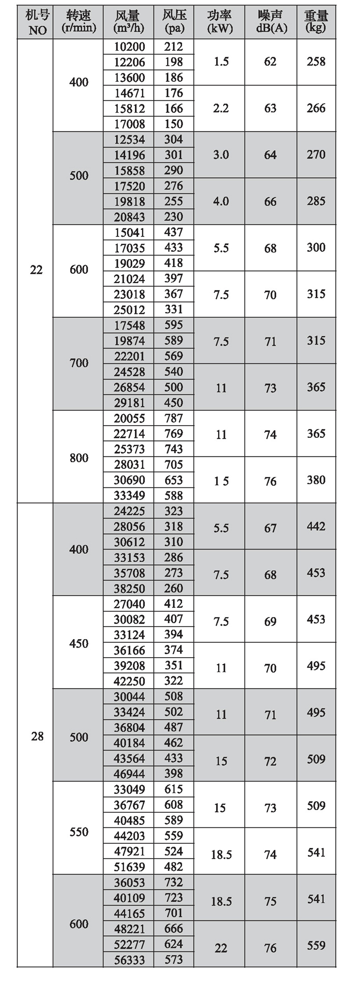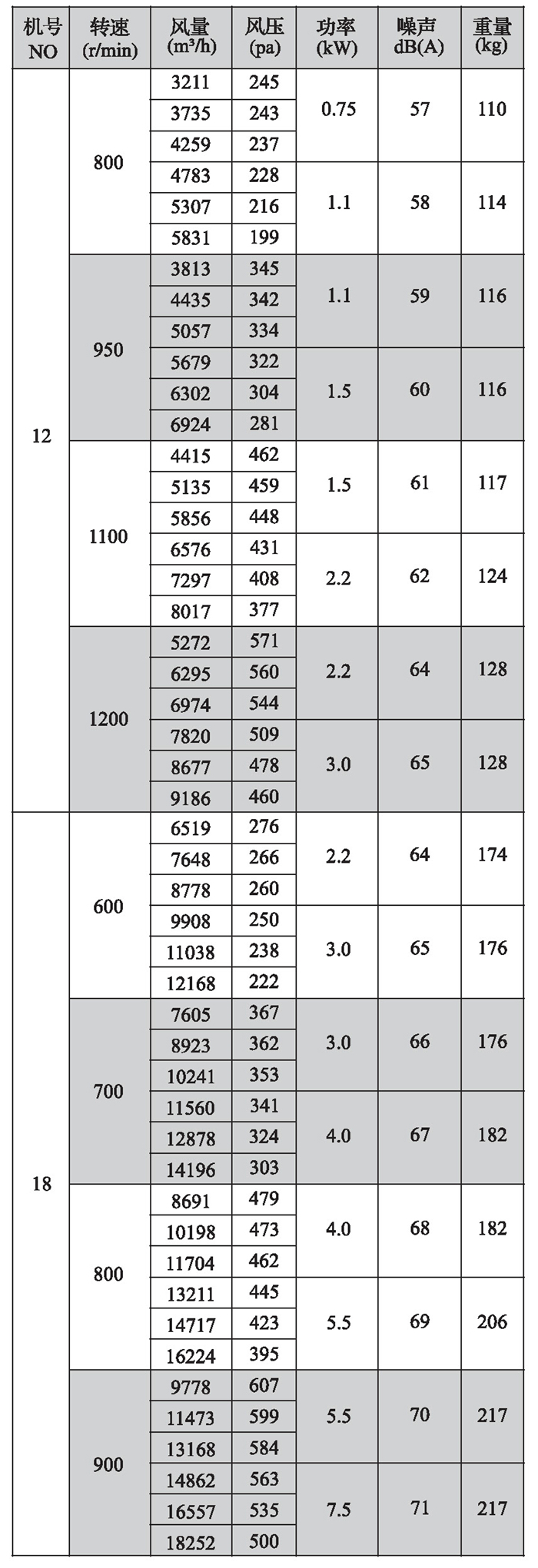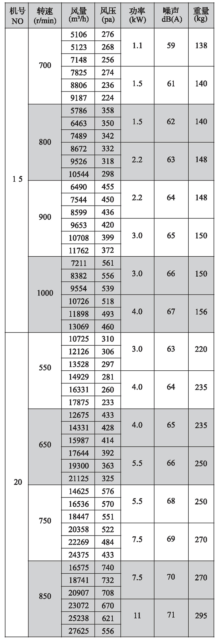 2.機號NO為葉輪直徑英寸數(shù),如電機放在風(fēng)機上面,A型高度須補加電機高度,寬度須補加皮帶罩寬度;如電機放在風(fēng)機側(cè)面,A型寬度須補加電機長度。