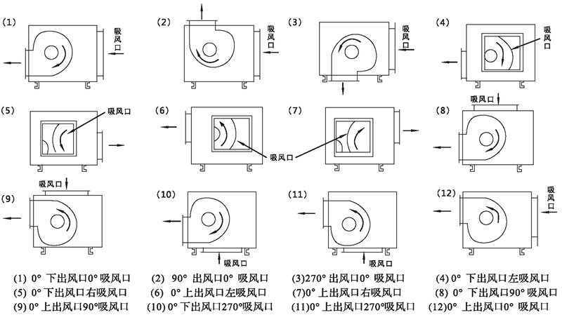 四、HTFC型風(fēng)機進(jìn)出風(fēng)口位置編號表