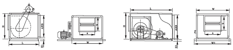本系列產(chǎn)品分為A型和B型兩種,電動機安裝在箱體外的為A型,經(jīng)耐高溫試驗,在煙氣溫度大于280七高溫情況下,能連續(xù)運轉(zhuǎn)30分鐘以上,達(dá)到消防排煙之目的,配用雙速電機后,既可在低速通風(fēng)換氣,又可在高速時消防排煙,為一機兩用:電動機安裝在箱體內(nèi)的為B型,一般作送排通風(fēng)使用。